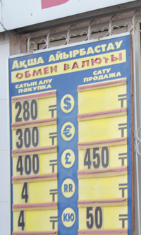 Соған қарамастан, кейбiр банктердегi долларды сатып алу бағамы күндiз 300 теңгеден асып түстi. Банк центркредит долларды 301 теңгеге сатса, Қазкоммерцбанк бiр доллардың құнын 299,62 теңге шамасында белгiлептi. Түстен кейiн банктер мен айырбастау пунктерiндегi доллар бағамы сәл арзандады. Түскi сағат үш шамасында Банк центркредит долларды 290 теңгеге сатып, 288 теңгеге сатып алып жатты. Қазкоммерцбанк бұл уақытта бiр долларды 285,56 теңгеге сатып, сатып алу бағамын 282,11 теңге шамасында белгiлептi. Басқа банктерде де осы шамалас айырбастау бағамы орнатылғанымен, бұл меже сағат сайын өзгерiп отырды.