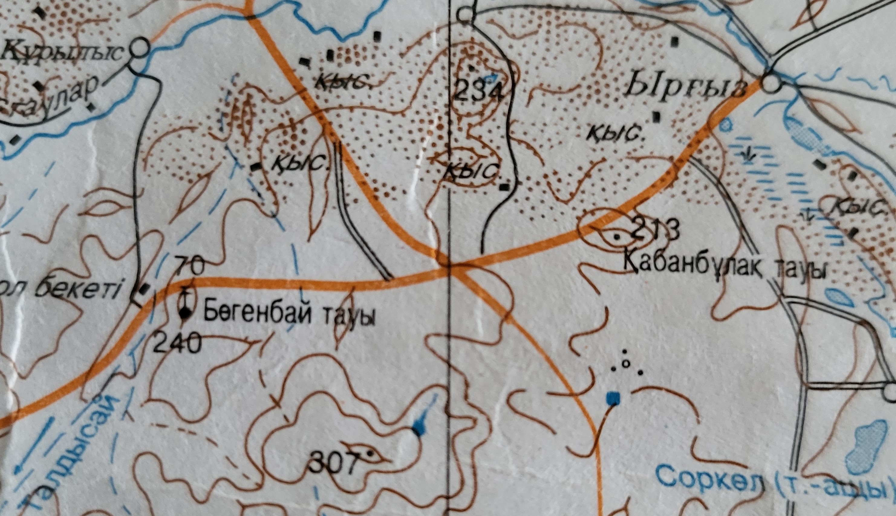 a) «Qazaqstan Respublikası Aqtöbe oblısınıñ äkimşilik-aumaqtıq bölinisi. Kartanı 2012 jılı RMQK-nıñ Wlttıq kartografiyalıq-geodeziyalıq qorı» jasap, baspağa dayındap jäne basıp şığardı». Osında pikir özegi bolıp otırğan şoqı «Bögenbay tauı» dep körsetilgen;